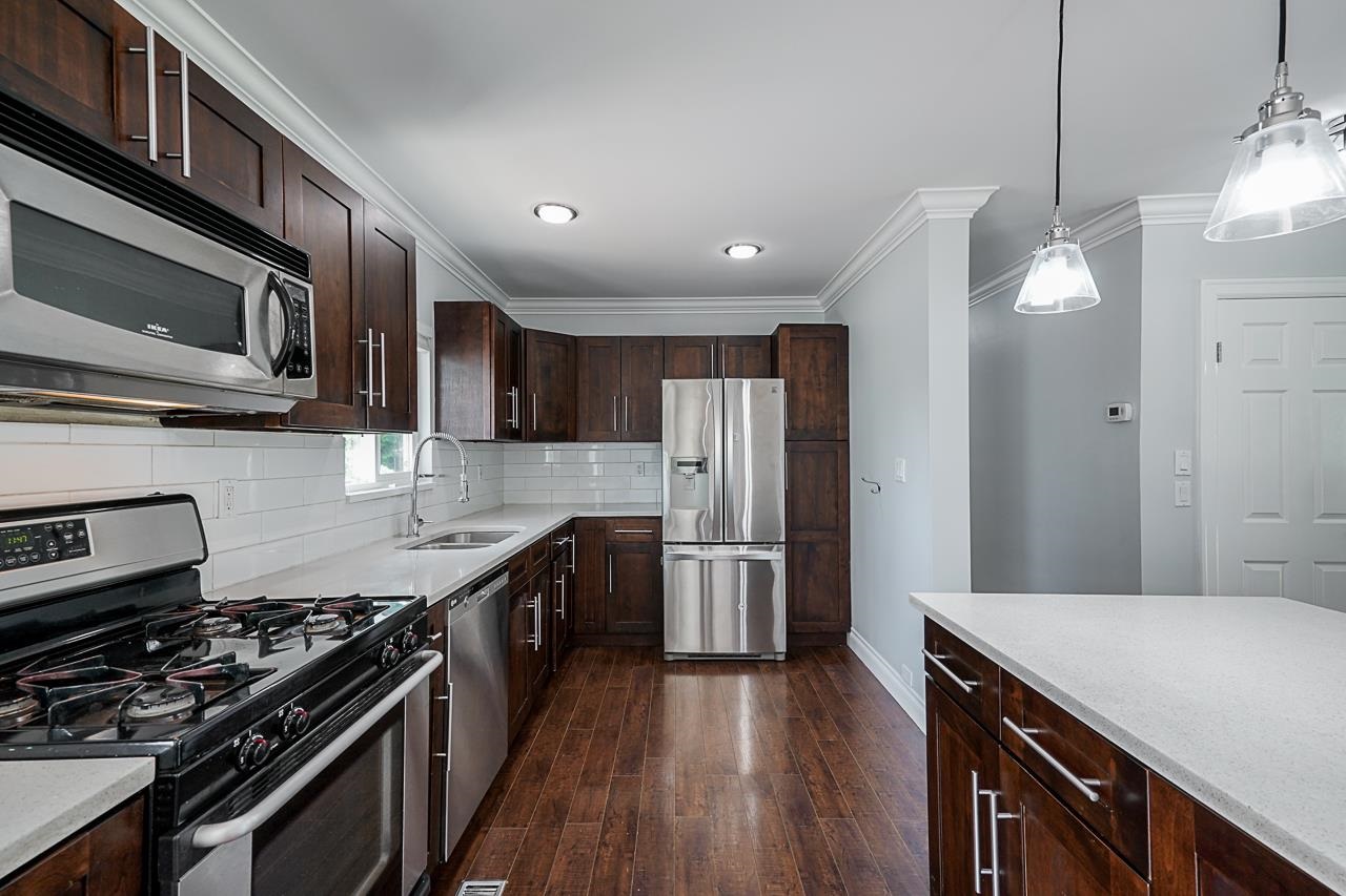 Welcome to 1632 Roberston Avenue located in Port Coquitlam. Updated throughout and sits on a massive rectangular lot over 8000 SQFT. Features open layout which is ideal for large gatherings once COVID is over with. Modern Kitchen featuring quartz countertops, huge island, comes with stainless steel appliances. South exposed backyard to soak in the sun and enjoy your BBQ. 3 bedrooms on Main Floor with 1 bedroom suite below as a perfect mortgage helper. Also comes with a Large rec room below for upstairs use. Walking distance to both levels of school and amenities.