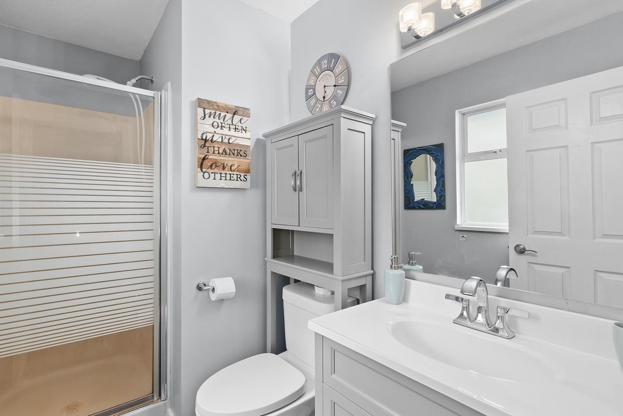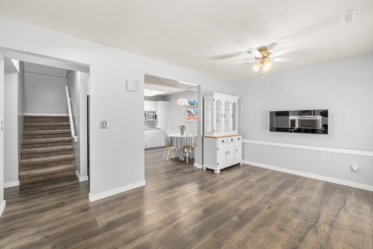 The perfect property for first time home buyers or investor. This home offers 4 bedrooms 2 and a half bathrooms plus a bright inviting kitchen with stainless steel appliances. There have been many updates and the home has been loved + very well maintained over the years. This 1/2 duplex also has the bonus of a backyard that is beautifully landscaped all the way to the top of the property where you can enjoy Mountain + Fraser River views.
